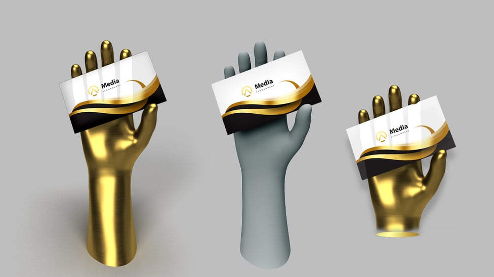 .PSD | A beautiful gold and clay hand to hold a business card.